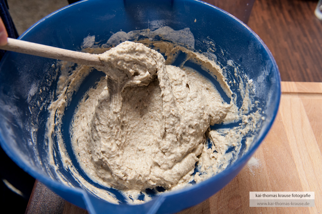 - 400ml Wasser (je nach Mehl mehr oder weniger, s.u.)