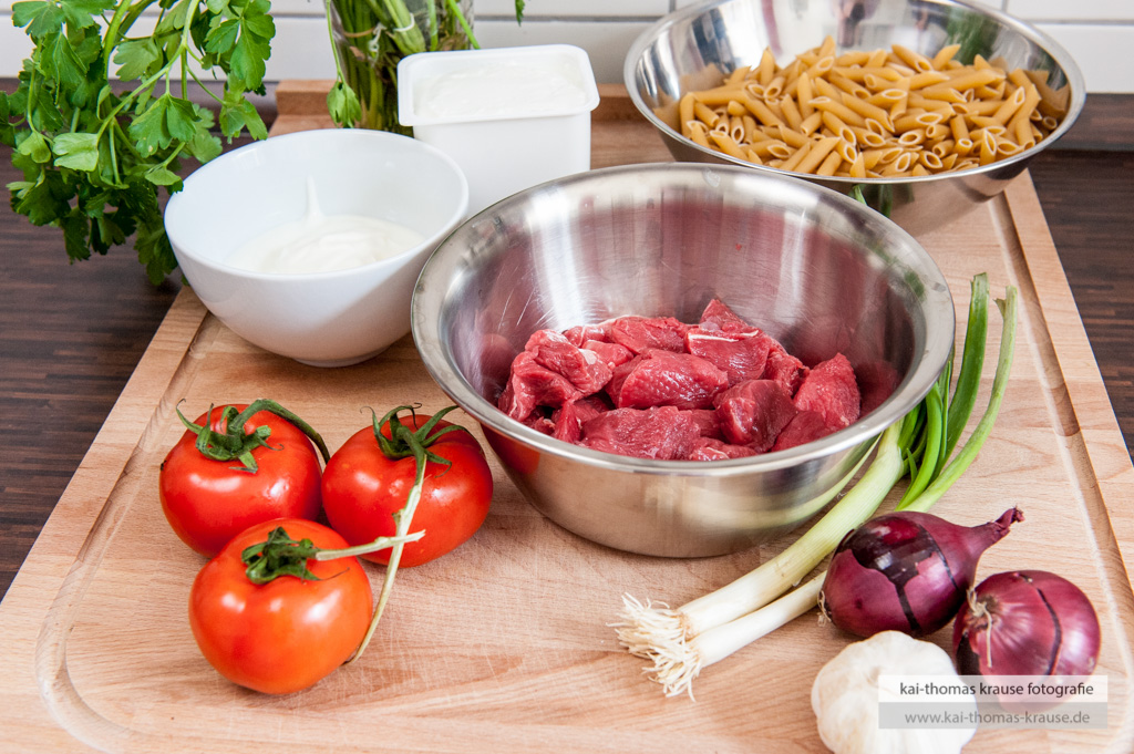 Dieses Rezept existiert schon seit gut über 20 Jahren in meiner Küche. Es ist kein Originalrezept – vielmehr ist es daraus entstanden, dass ich früher ein Bistro besucht habe, in dem es ein Nudelgericht mit diesem Titel auf der Karte gab. Irgendwann ist man nicht mehr dort hin gegangen, aber das Gericht war immer noch im Kopf. Also ging es ans Nachkochen aus dem Kopf. Über die Zeit hat sich das entwickelt was ich hier als Rezept aufschreibe. Ich persönlich mag dieses Gericht besonders, weil es durch den Quark eine frische Note erhält, die ansonsten bei Nudelgerichten nicht anzutreffen ist.