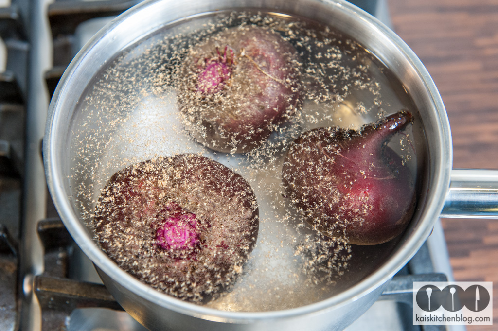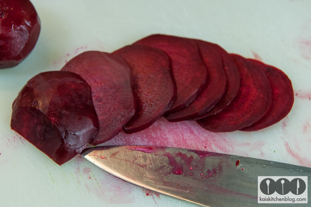 Die Rote Beete in einem Topf in reichlich Wasser kochen. Ordentlich salzen und Kümmelpulver oder ganzen Kümmel dazu geben. Etwa 20 Minuten kochen, aber darauf achten, dass sie nicht zu weich wird.