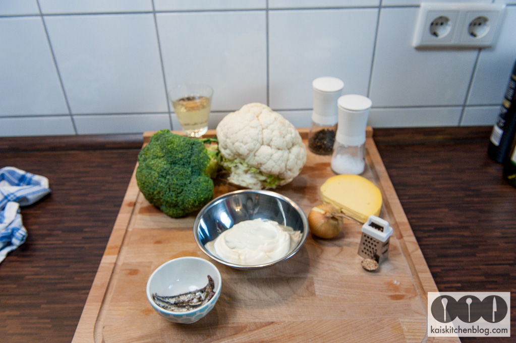 Blumenkohl und Brokkoli waschen und in Röschen teilen. In einem Topf garen oder dünsten, dabei darauf achten, dass das Gemüse nicht zu matschig wird. Ein wenig Biss sollte bleiben.
