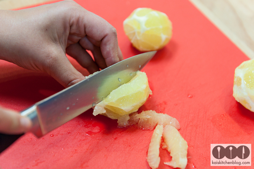 Für die Füllung die Schale der Zitronen abreiben und beiseite stellen. Dann werden die Zitronen geschält und filetiert. Darauf achten, dass keine Kerne mehr im Fruchtfleisch sind.