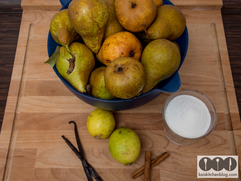 Marmeladen sind eine wundervolle Sache. Ich finde sie konservieren ein Stück vom Sommer in einem Glas, das man jederzeit öffnen kann. Dazu ein frisches Brot und Butter – ich brauche nichts Anderes mehr. Um so verwunderlicher, dass ich bis jetzt noch nicht selber zum Kochlöffel gegriffen habe. Nun wurde ich mehr oder weniger dazu gezwungen, als ein Bekannter mir 3kg reife Birnen aus seinem Garten in die Hand drückte. Ich versuchte ihm zu erklären, dass ich keine Ahnung hätte, was ich mit so viel Birnen anfangen soll, aber er meinte nur, dass ich mir schon was einfallen lassen würde. Gut, hier nun der Einfall: ein Marmelade kochen.