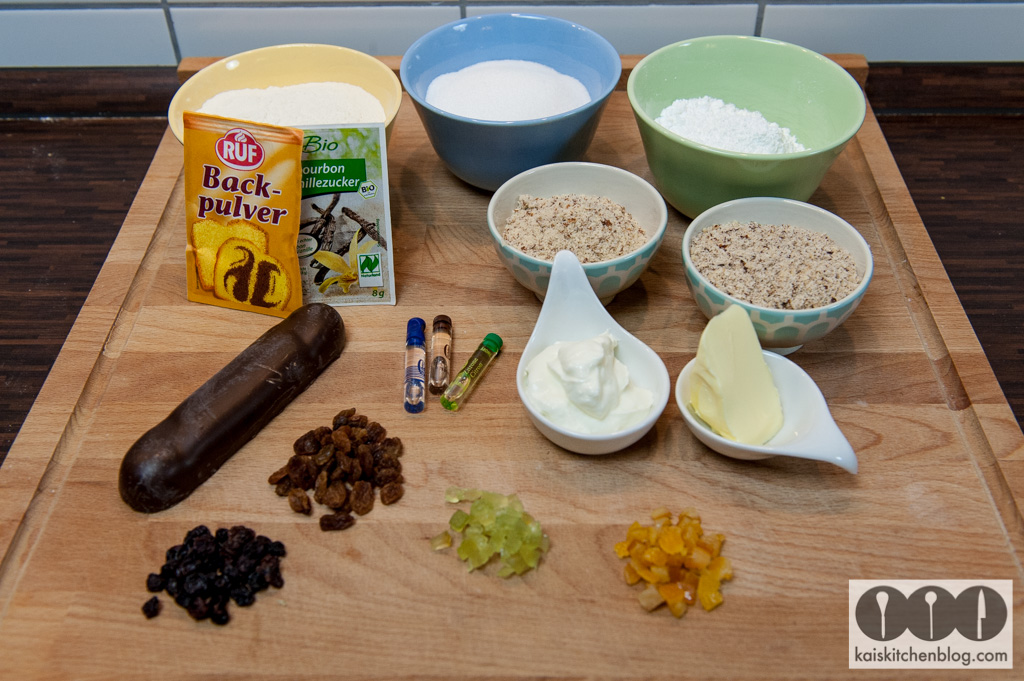 Der Stollen gehört ja bekannter Maßen zu den populären Weihnachtsgebäcken. Bei mir hat er sich vor knapp 10 Jahren in die Küche eingeschlichen. Seid dem bekomme ich jedes Jahr in der Weihnachtszeit die recht eindringliche Frage, ob ich denn wieder selber Stollen machen werde. Und jedes Jahr mache ich wieder einen. Warum? Selbst gemacht schmeckt in diesem Fall immer besser! Und man kann ein wenig mit den Zutaten spielen und nach seinem persönlichen Geschmack abstimmen (ich kenne z.B. viele Menschen die keine Rosinen / Korinthen mögen – für alle die es schon immer mal wissen wollten, wird der Unterschied im Übrigen hier erklärt). Auch wenn Stollen eigentlich ein wenig lagern sollte, mag ich darauf hinweisen, dass so richtig frischer Stollen auch extrem lecker ist – dummer Weise bekommt man den nur, wenn man ihn selber backt. Gekaufter Stollen ist teilweise schon recht lange vor der Saison vorgebacken, da er ja lange lagerfähig ist. Gut, die Zutatenliste ist lang, aber eigentlich ist die Zubereitung recht einfach. Und nun: ran an den Backofen!