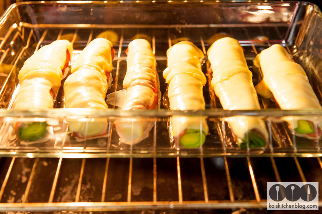 Schließlich mit einer halben Scheibe des Goudas belegen. Den Backofen auf 180 Grad vorheizen. Das Lauch braucht etwa 25 Minuten – der Käse sollte verlaufen, aber nicht zu trocken werden.