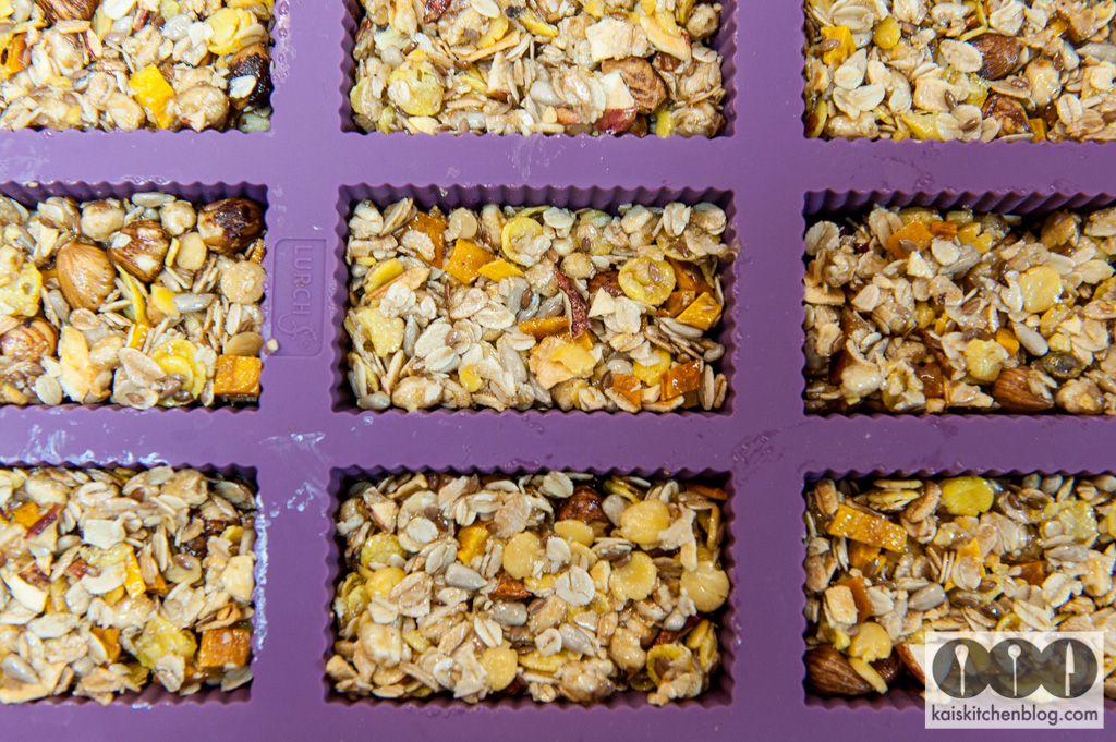 Nachdem ich mich schon in eigenem Müsli versucht habe, war der Schritt nicht mehr weit auch mal die Produktion von Müsliriegeln in Angriff zu nehmen. Es hat zwar drei Versuche gebraucht, bis das vorliegende Rezept heraus kam, aber das war es wert. Denn das Ergebnis sind sehr leckere Riegel – hier in zwei Varianten vorgestellt. Ich finde sie sind deutlich besser als die Ware, die man – auch von namhaften Herstellern – im Supermarkt zu kaufen bekommt. Ich nehme für alle Zutaten gerne die Bio Variante einer bekannten Drogeriekette mit zwei Buchstaben. Nun kann man sicher über die Bio Label streiten, aber ich finde die Qualität ist klasse. Interessant ist am Ende auch, was so ein selbst gebauter Riegel kostet. Bei der Cranberry Variante bin ich bei knapp unter 40 cent gelandet, bei der Apfel-Mango Variante bei unter 35 cent (gut, es wurde kein Strom für den Ofen eingerechnet…), was ich beides für erstaunlich günstig halte.