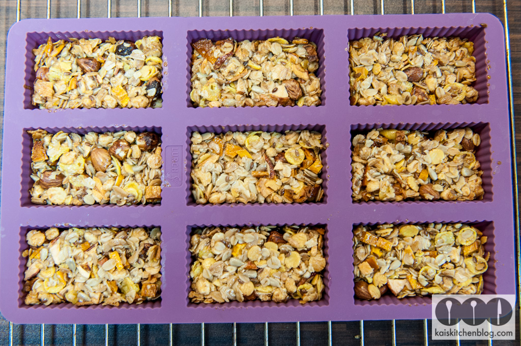 Wenn die Riegel fertig gebacken sind abkühlen lassen und dann vorsichtig aus der Form drücken. Es empfiehlt sich die Lagerung mit Butterbrotpapier zwischen den Riegeln, damit sie nicht verkleben. Die Riegel sind luftdicht verschlossen sicher eine Woche haltbar, schmecken aber frisch am besten.