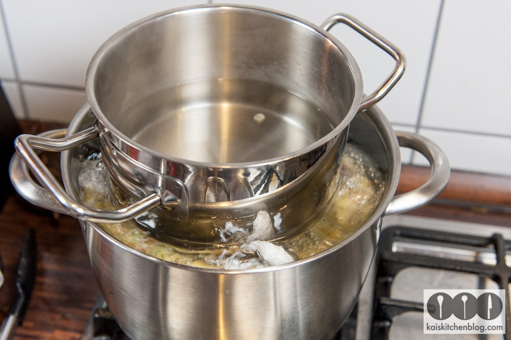 Einen großen Topf mit Wasser zum Kochen bringen und dann die Rollen auf kleiner Flamme für ca. 20 Minuten kochen. Sollten sie zu sehr an die Oberfläche gedrückt werden, einfach von oben einen kleinen Topf drauf setzen, so das alle Rollen unter Wasser sind.